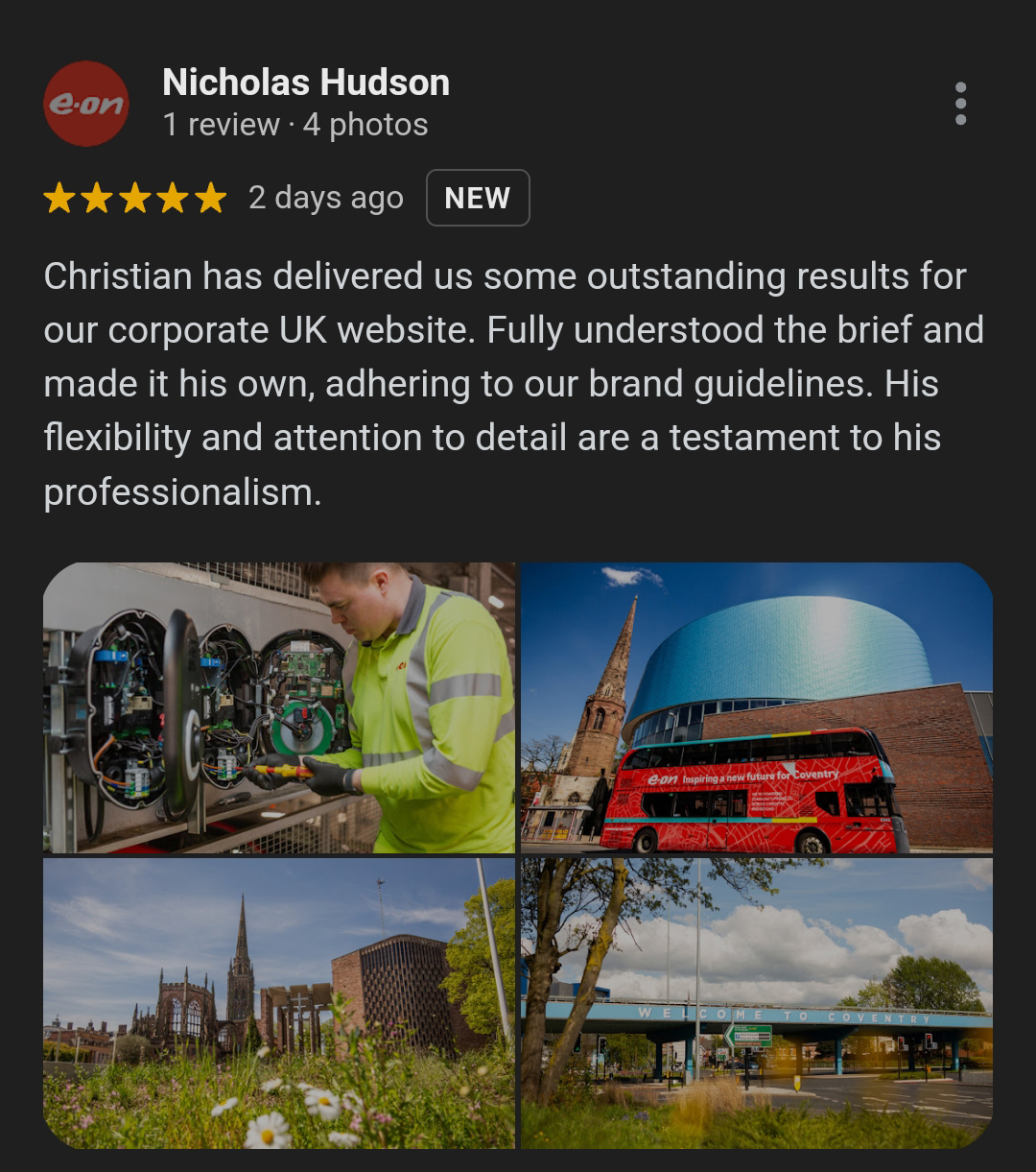 Nick's review refers to two separate shoots that I did for Eon Energy in 2024. The brief for the first shoot